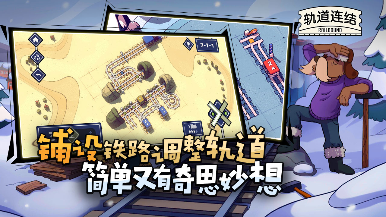 《轨道连结》(Railbound)是一款轻松的铁轨拼接解谜益智游戏,解决各种巧妙谜题,健康向上的艺术和音乐氛围在游戏世界中享受以漫画为灵感的视觉效果,或者重新安排火车路线,